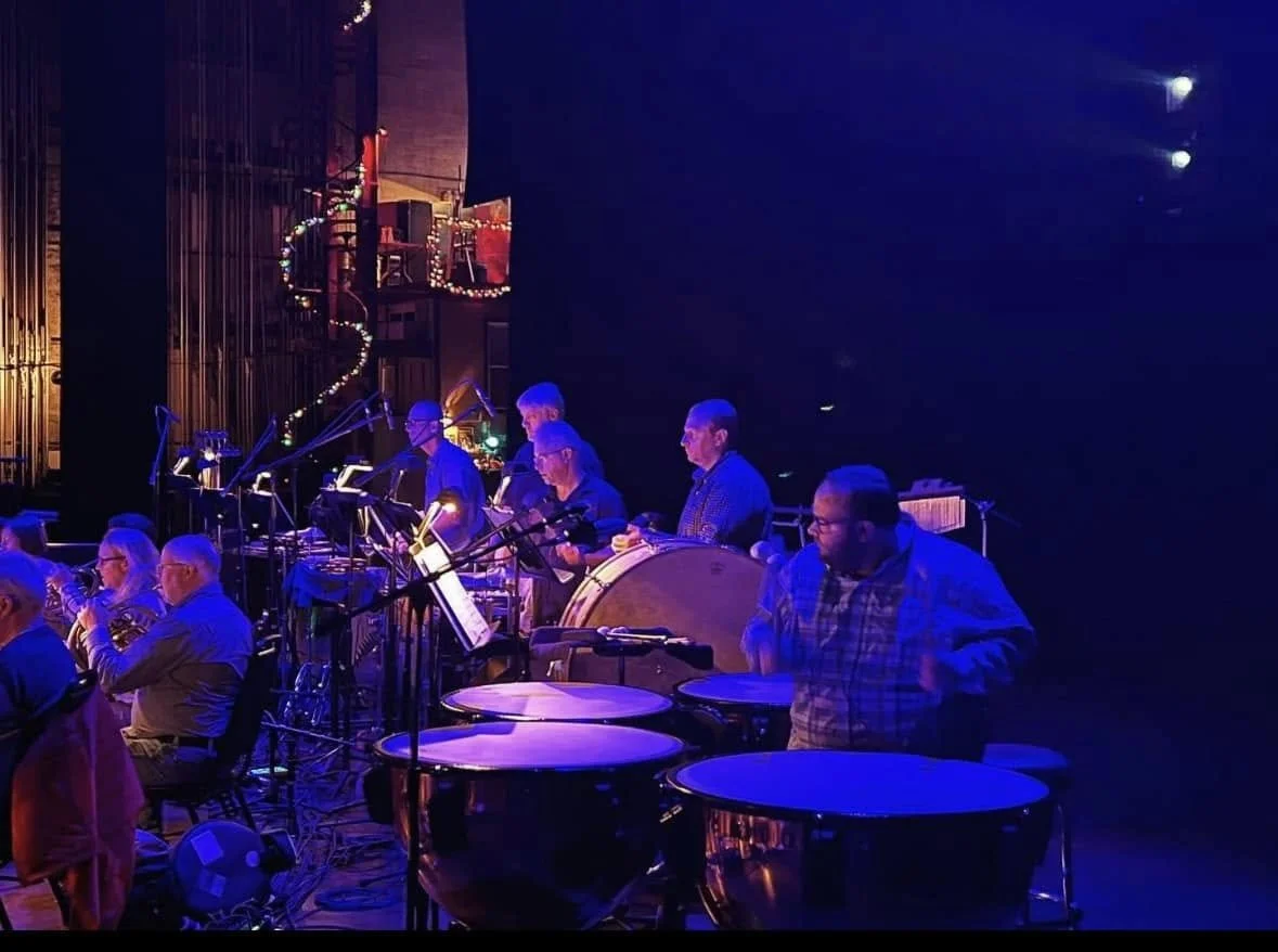 View fullsize  Indiana University Philharmonic Percussion section Ross Erickson, JJ Pearse, myself, and Nick Stevens playing the "Storm movement of Berlioz's Symphony Fastastique.