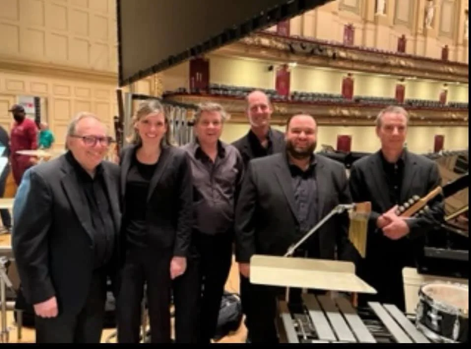 View fullsize  New World Percussion Section after playing Copland's Third Symphony.  Matt Howard, myself, Brad Loudis, Stephen Kehner, Alex Wadner, and Dan Morris.